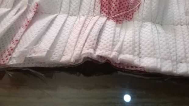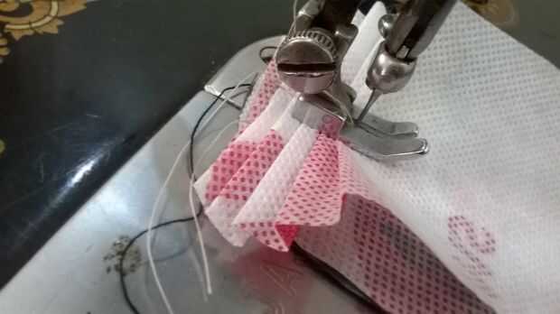 El proceso debe repetirse hasta que hemos cubierto el entero de nylon con pliegues. Después de completar la costura en el centro