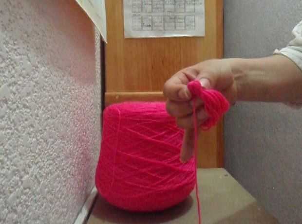 6. atarla firmemente con un nudo. No corte el exceso de lana.