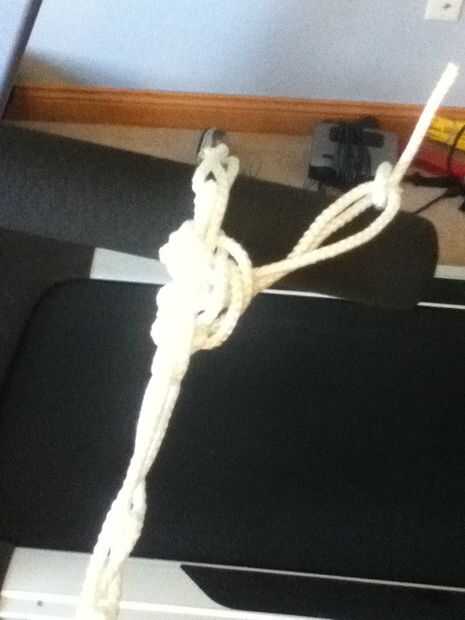 Para desatar, ancle el extremo de la cuerda que comenzó con a algo pesado