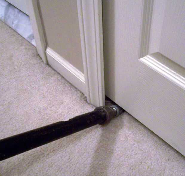 Nota: La puerta del armario todavía puede cerrar con el tubo y gancho en su lugar.