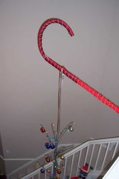 Envolver el tubo y viga en cinta cinta roja le da un aspecto de bastón de caramelo.  (cinta roja y blanca añadir a la apariencia de bastón de caramelo pero no tenía ningún práctico este año así que tuve que conformarme con el rojo y el oro)