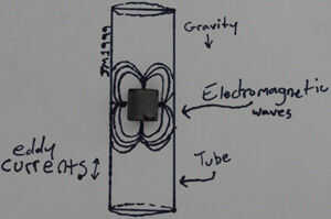 A su vez, las corrientes de arriba abajo empuja el imán hacia arriba el tubo por lo que es caer a un ritmo extremadamente lento.