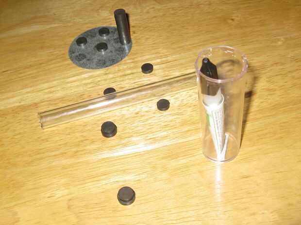 Componentes 1. vidrio o tubo de plástico. 2. pegamento que se adhieren al vidrio, plástico o metal. 3. imanes botón que encajan dentro del tubo. 4. grandes imanes de botón para cerrar el tubo.