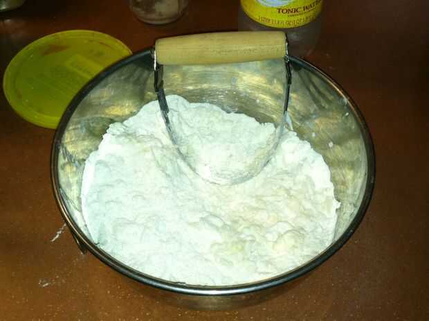 - Utilice un cortador de pastelería (fotografiado), un tenedor o las manos para mezclar todo. No mezcla.