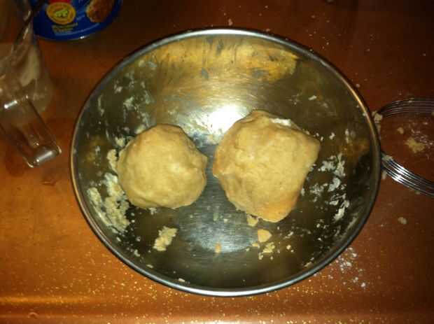 - Forma la masa en dos bolas, una poco más grande que la otra. Poner en el refrigerador para enfriar. Esto hará que forman la corteza más fácil más adelante.