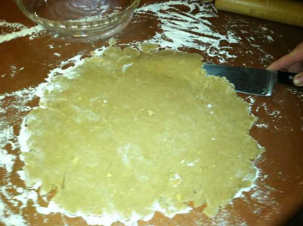 - Sobre una superficie ligeramente enharinada, estirar la masa hasta que esté ligeramente más grande que la tartera.
