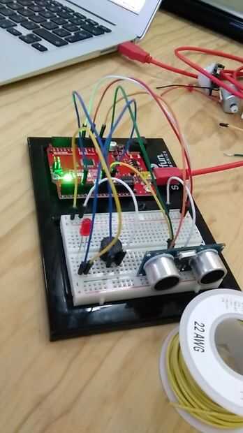 La idea fue hacer un sensor de distancia derecha con un sonido, cuando se esta estacionando en reversa. A una distancia prudencial avisa con una luz y con el sonido.