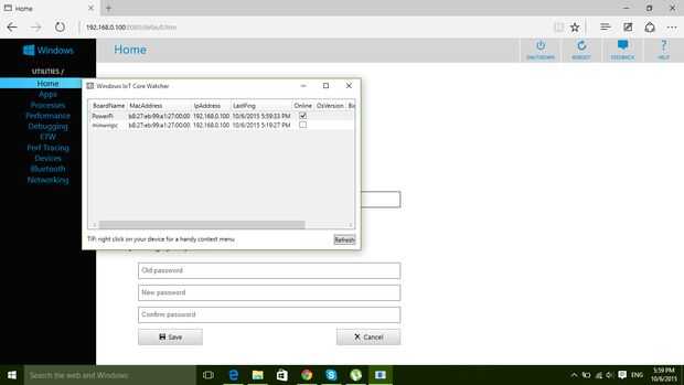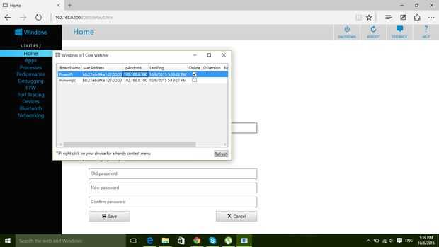 Maximizar o abra la aplicación de WindowsIoTCoreWatcher, si tu Pi está conectado a la LAN se verá en el ostentoso núcleo.