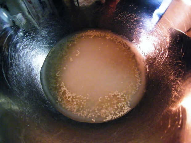 Cepillo de la taza con aceite de maní y la capa de la masa. Cubrir el tazón con toalla limpia y colóquela en el horno previamente calentado.