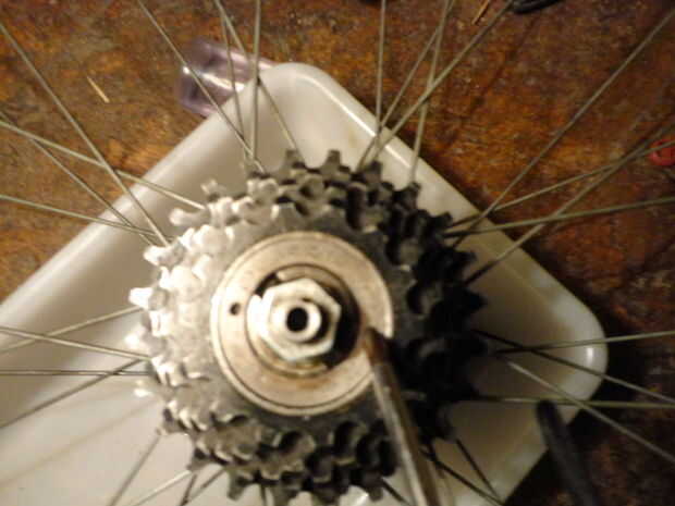 Arreglar su bicicleta. Sus cojinetes con grasa y cambiar la rueda libre.