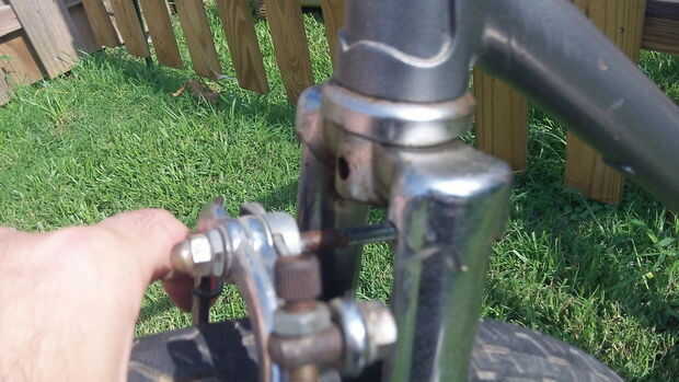 Antigua bicicleta, ruedas nueva - edificio para que los frenos ajuste de un perno. (2 / 5 paso)