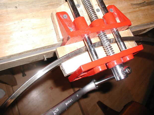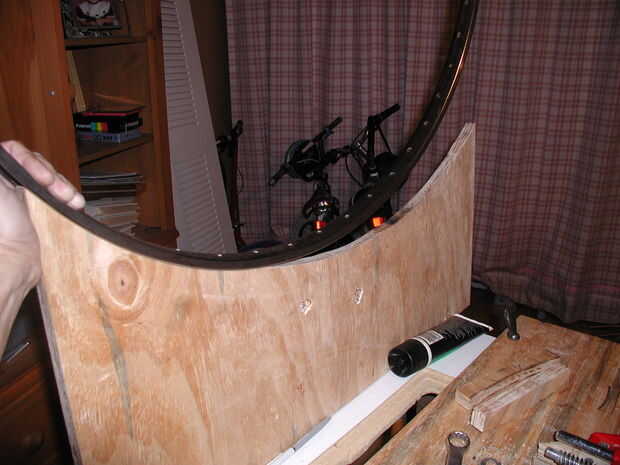 Como el borde de la approaces un semicírculo perfecto, también puede colocar en la parte superior del borde y curva/enderezar un poco ya que las llantas tienen una ligera tendencia a volver a su vieja forma.