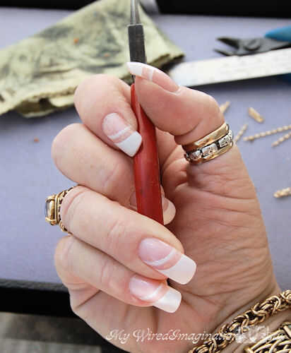 Mantenga sus alicates en tu mano dominante y el enlace que está trabajando, en el dedo índice de su mano no dominante.