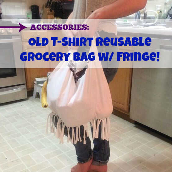 Estas son las instrucciones DIY para la creación de su bolsa reutilizables propio. El bolso es con asas y un ajuste de la franja sassy. Si utiliza una camiseta que ya tiene un bolsillo en el pecho, la bolsa puede tener un bolsillo demasiado! Tenga en cuenta que esta bolsa es lavable, por lo que es grande como un bolso de gimnasio sudoroso o un bolso de compras respetuoso del medio ambiente. Esto es muy fácil y sólo requiere dos cosas!