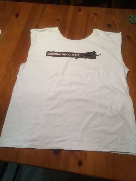Corte 1 pulgada de la costura en las mangas y deseche los pun ¢ os del brazo. Su camiseta ahora debería verse como un músculo del tirantes. Recorte la costura de la parte inferior de una pulgada, también. Ahora, la camisa debe tener un fondo limpio, recto con ninguna costura gruesa.