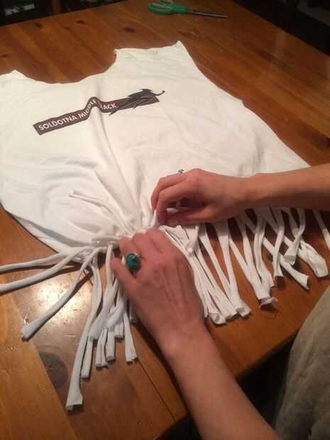 Antigua camiseta reutilizables bolso con flecos! (5 / 8 paso)