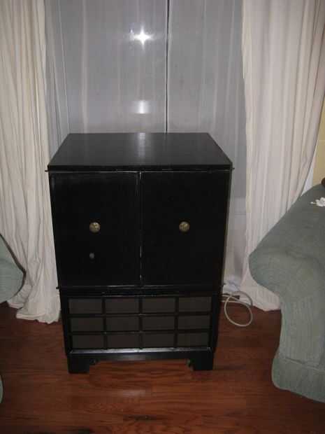 Mi cuñado tenía este viejo televisor de la consola de los años 50 que él había planeado para "reconstruir" en su apartamento durante años. Sus gatos lo usan como un poste de rasguño y que ha sido su vida. Cuando él se movía fuera de su apartamento que él preguntó si quería y mi inmediata pensaba era construir un bar!