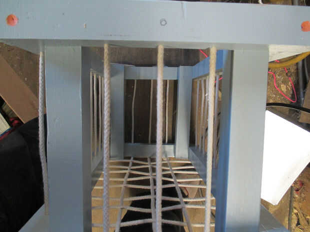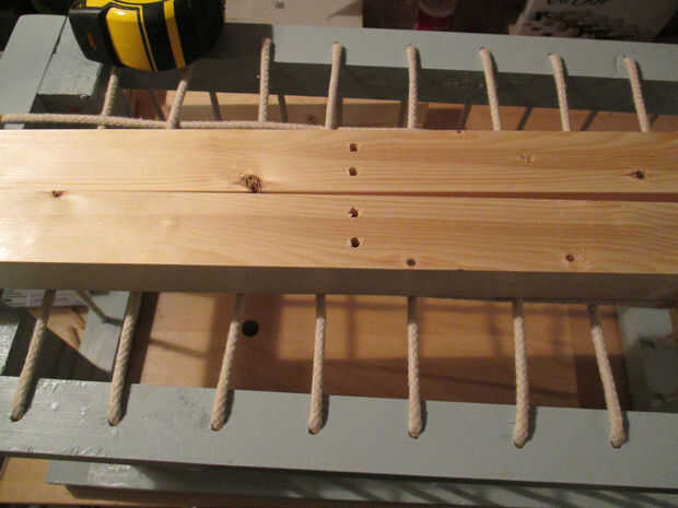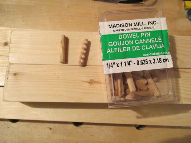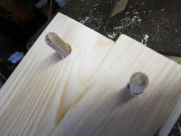 Los agujeros de pivote en la parte superior deben tener la cuna bastante nivelado con la parte superior del soporte. Usé 1 1/4" tarugos, que son un montón de fuertes. La profundidad de los agujeros del taladro en el soporte y cuna para permitir aproximadamente 3/16" espaciamiento entre las piernas de soporte y marco de cuna.