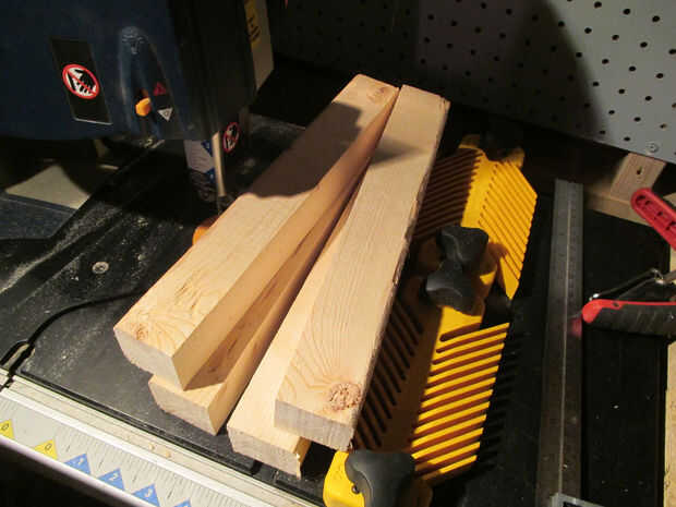 Naturalmente, usted puede hacer el tamaño lo que quieras, pero 1' x 2' es una buena guía. Primero cortar mi 4 lado de la parte superior e inferior, arrancado en la mitad, luego hizo los 4 extremos y los arrancó. Pensé que las juntas a tope sería el más fácil y mucho fuerte para el propósito. Arrancó mis piezas usando una sierra de banda, pero una sierra de mesa daría mejores resultados.
