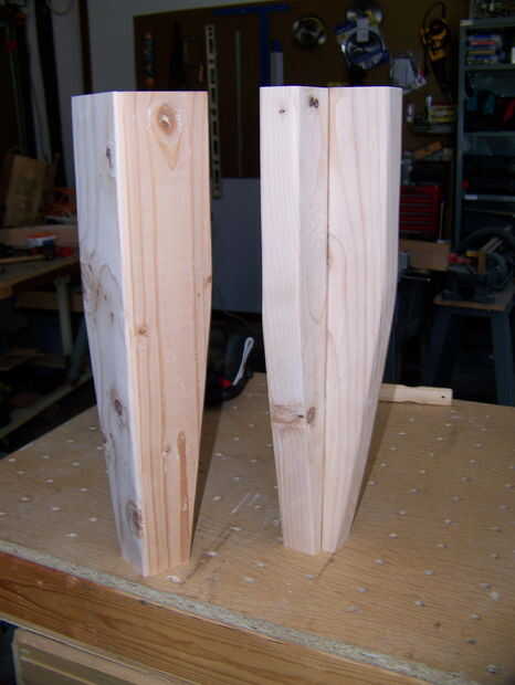 Las piernas se hicieron con 2 x 4. Son 18" de alto y son cónicos a partir de hasta la mitad. Ellos se juntan en un ángulo de 45 grados (como la esquina de Marcos). En última instancia, puedes hacer que quieras! Puede utilizar cualquier desecho que tienes y crear su propio diseño! Después de 6 patas se reunieron, fueron pintados con pintura marrón chocolate.