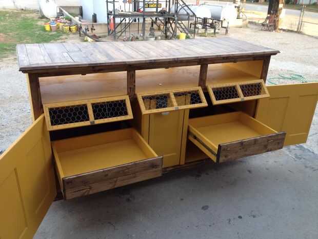 Final es el último paso, mi esposa eligió un atrevido color amarillo. Después de lijar y rellenar unos agujeros de clavo pequeño, mancharon la moldura y la parte superior. También había manchado los frentes de los cajones, después de la tinción cinta de todas las partes manchadas. Luego viene la pintura, si usar una pintura color clara entonces estar dispuesto a aplicar un montón de capas que hacerlo bien. El gabinete tiene cerca de ocho capas de pintura, ahora quite la cinta y tocan algunos ups. Sin duda habrá algunas manchas de pintura. Ahora Asamblea los cajones irá bastante fáciles y puertas, las puertas superiores añadí alambre de pollo a. Esto le da el aspecto de viejo país, también opté por mantener la tapa abierta. Toda la electrónica irá para arriba, que esto ayudará a mantenerlos frescos. También apliqué aceite danés a las partes manchadas antes de pintar, esto asegurará que el aceite no hace que la pintura brillante. El último paso fue a cubrir la espalda cayó más completa, he comprado un trozo de fino 1/4" madera contrachapada corte y lo teñido hace. Aplicado a la parte de atrás y ahora el más secreto de todos los pasos.