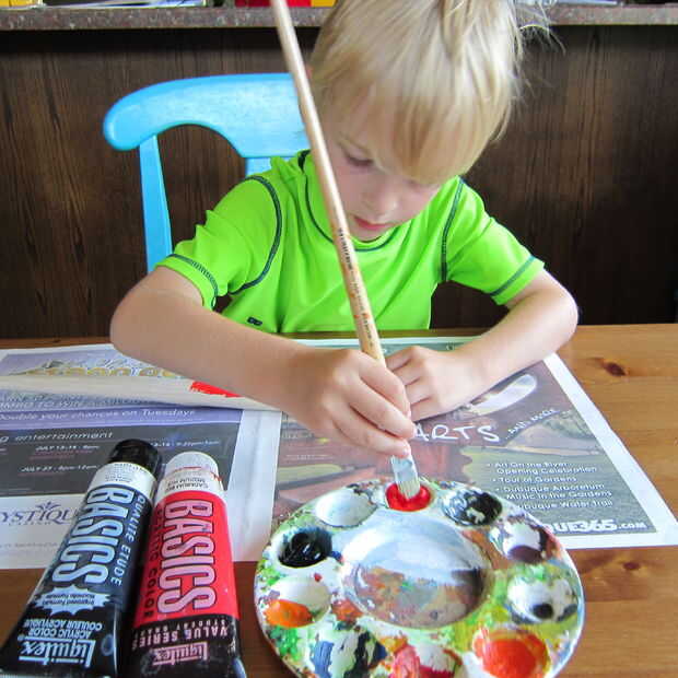 Diario de la cinta sobre la superficie de trabajo - los niños pueden ser sucios! Un delantal de la pintura o camisa vieja no es una mala idea si usas pintura que puede estropear la ropa.