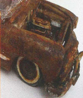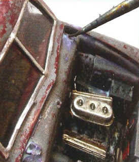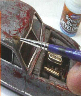4. muestra el moho seco / carpeta de mezcla en la parte trasera del vehículo. Tenga cuidado tratar de conseguir un equilibrio realista en esta etapa si no quieren acabar con un vehículo totalmente oxidado hacia fuera.