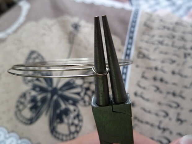 Después de haber medido, doble círculo en uno de los extremos del alambre memoria usando sus alicates de punta redonda. Después de eso, ponlo directamente en el cable de memoria usando alicates planos. El alambre de la memoria puede ser muy difícil de doblar, ya que ha hecho permanecer en un círculo.