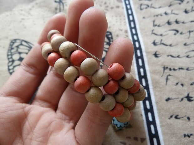 Ya habiendo hecho eso Círculo en el último paso, puede comenzar a agregar sus cuentas con el cable de memoria. Cuando haya rellenado completamente, doblar otro círculo, esta vez al extremo del alambre memoria.