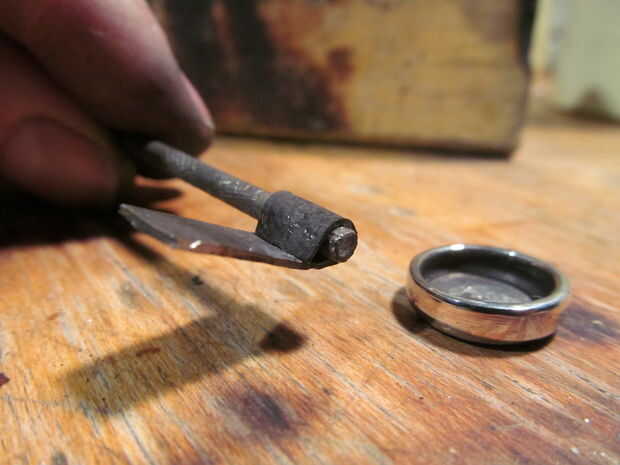 The jump ring is also made from nickel. Yo corte una tira, martillado plana y doblar la tira de la manija de un archivo para que sea redonda. No olvides Recueza demasiado.