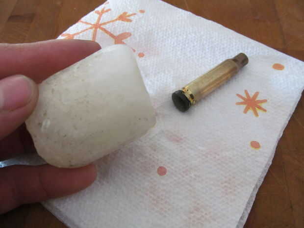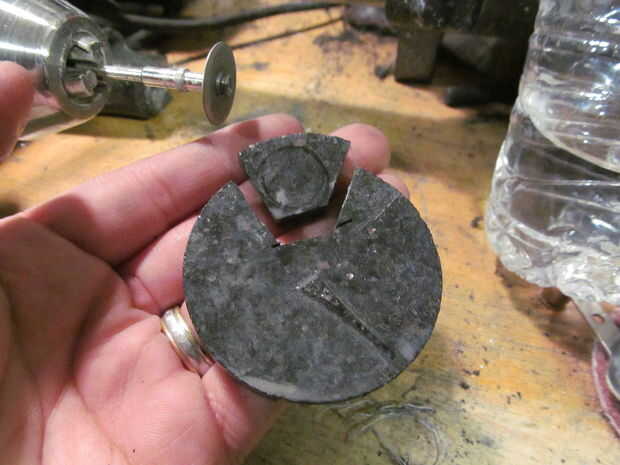 Corté un pedazo hacia fuera usando un disco de diamante pequeño. Desde allí era una parte posteriora y adelante entre pulido, lijado y mucho más. Finalmente llegué a la forma quería y pulir en una rueda que pulimenta. Para el pulimento final usé cera de vela como en la caja.