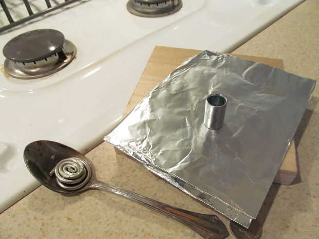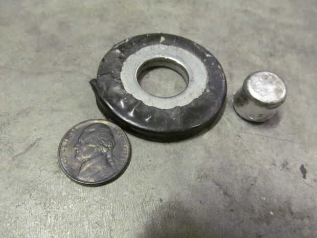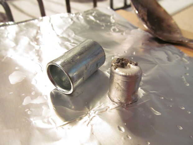 También es un cilindro de metal maleable. Para esto derritió alguna soldadura de plata y vierte en un espaciador de 1/2".