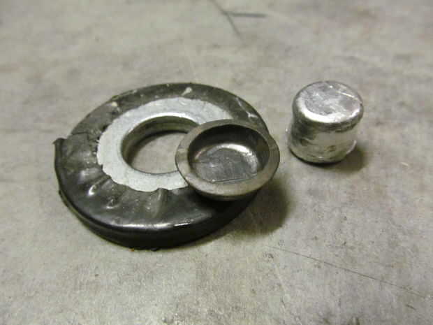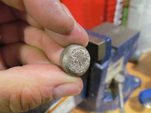 Centro de níquel sobre el agujero de la arandela. Lugar de la soldadura de plata en blanco centrada sobre el níquel. Le dan unos golpes; centrado todo cada vez. Eventualmente terminarás con un bol pequeño mirando cosa.