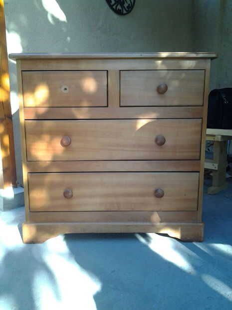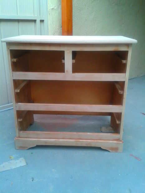 Mi esposo amoroso lija esta cómoda para mí, (probablemente porque sabía que me tomaría demasiado tiempo para hacerlo bien!). Quita los cajones y también les había lijado.