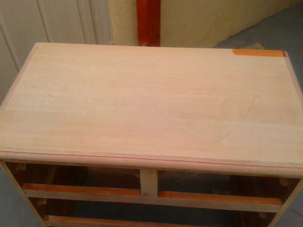 No estaba 100% feliz con el color del barniz por lo que hice algunas investigaciones sobre bricolaje madera teñido. Resulta, que con simple pintura acrílica y agua, puede teñir madera!