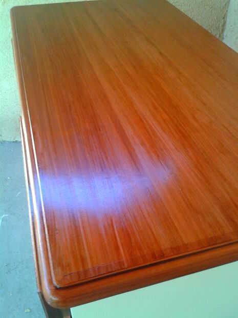 Nos dio la parte superior y dos capas de cajones de barniz con una brocha, esperada aproximadamente 1 minuto, luego suavemente limpiarlo con un paño libre pelusa/trapo. Lo hicimos dos veces.