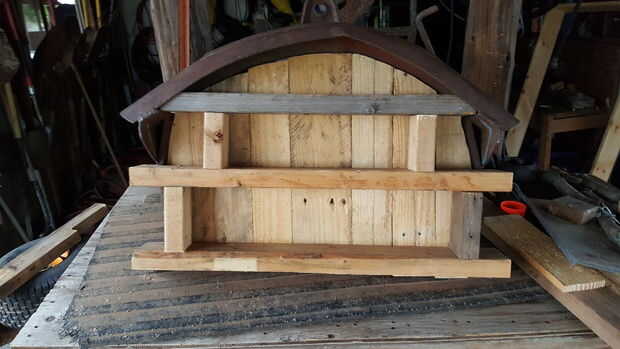utilicé madera de palet para construir. Para la base, remonta a la parrilla para conseguir la forma y cortar cada pieza para asegurarse de que cabe.