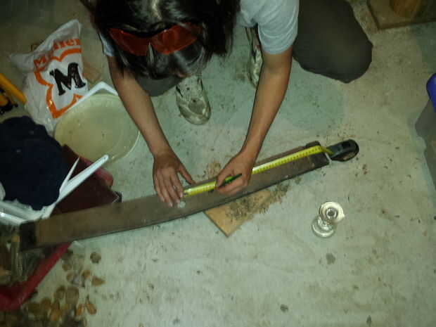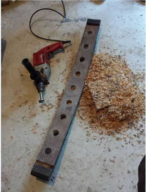 Marcar el centro de la duela y poner un vaso en la parte superior, calcular su distancia y separación entre agujeros y vasos de la pared. Nuestra tabla tiene 9 hoyos, cada hoyo es 9 cm de distancia.