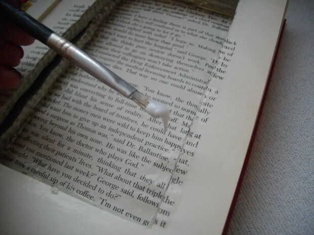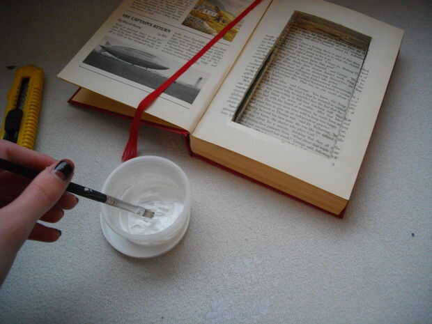 -Pegamento pintura PVA en el interior los bordes del agujero. Esto unen los para que lo interior no sólo entran a través de las páginas.