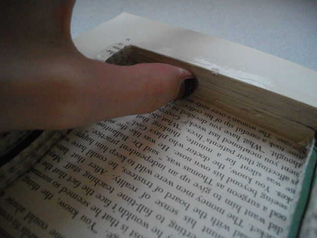 Ahora, a comprobar si es seca golpeando el borde. Luego llenarlo! Lamentablemente elegí un libro bastante pequeño para que mina sólo quede mi teléfono, brillo de labios y un pequeño monedero.