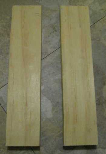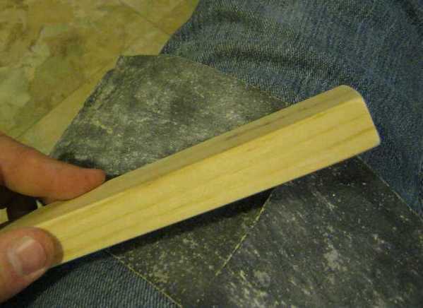 - Todos los bordes romos. Una fácil manera es descansar un pedazo de papel de lija contra la pierna o un cojín de sofá y mover la madera a través de él. Usé mi pierna y papel de lija de grano 80.