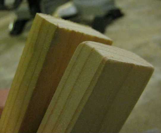 La última foto muestra la diferencia entre una pieza no romas de la madera frente a un pedazo embotado de madera.