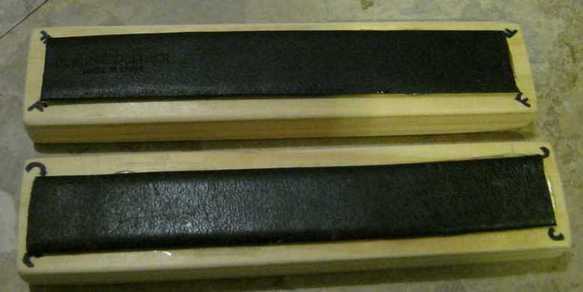 - Utilizar cualquier pegamento adecuado. Usé pegamento E6000 de mi esposa porque fue especificado para trabajar con madera y cuero. Para aplicar el pegamento uniformemente, sólo lo puse en una de las piezas de cuero y luego pegan la otra pieza que. He aplastado las dos piezas juntas y los separó.
