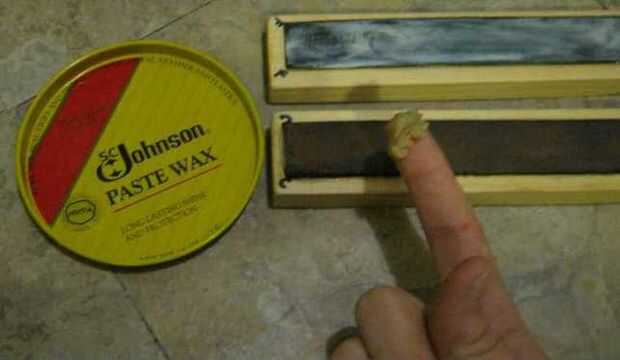 - Aplique pasta estaba por todas partes. Cera en pasta ¿por qué? Es barato, se utiliza para conservar el cuero y puede ser secado como el E6000. Esperé 30 minutos antes de proceder al siguiente paso.