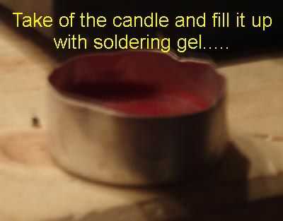 Así que tomé la caja de aluminio de una pequeña vela y pongo la cantidad adecuada de gel de soldadura y lo pongo en el agujero de nuestra base de soldadura como así en el primer paso. Ahora me funciona bien, y siempre tengo mi gel soldadura en uso...