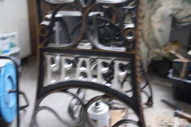 No me gusto la parte de oro así: le dio un "golpe" o en inglés... La arena y la pieza de metal regresó. El color plata lucen mejor con el escritorio de metal!