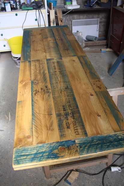 -Por último le di 2 capas de un barniz para darle esta tonalidad madera vieja.