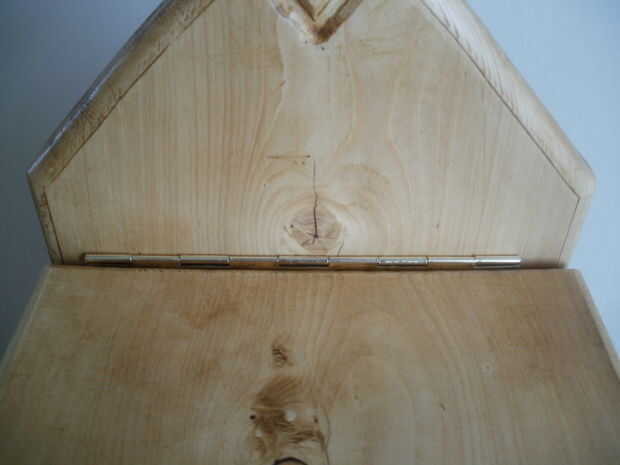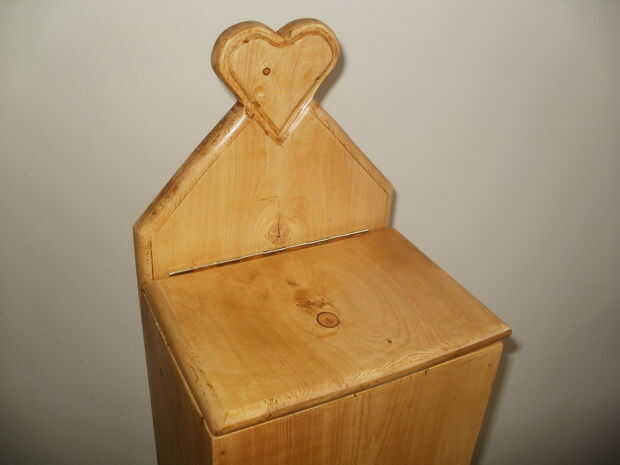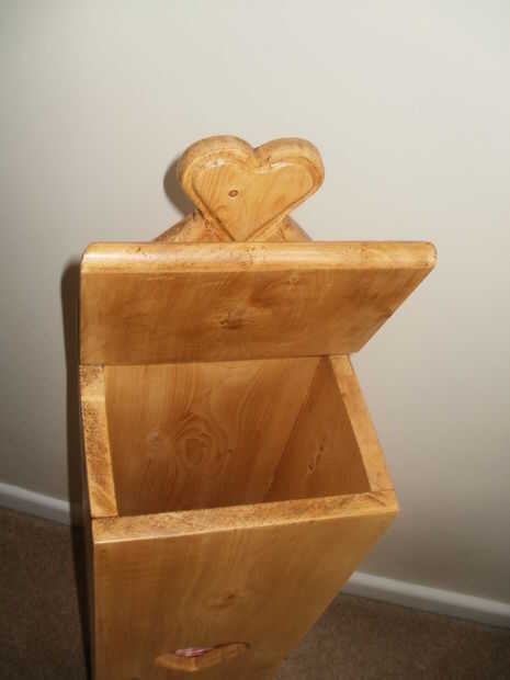 Los tableros de pino fueron cortados a la longitud, en el tablero frontal en forma de corazón el amor fue cortada con una plantilla que hice para el router luego los bordes redondeados. El corazón y el diseño en la parte superior fue cortada a mano con una sierra y luego redondea. Todas las piezas están empalmadas, pegadas y clavadas para mantenerlos juntos. La tapa se fija con una bisagra de piano por lo que no hay nada demasiado obvio que se pega hacia fuera. Todo es rematado y frota con briwax para dar un color más oscuro y brillo y también para protegerlo de la humedad.
