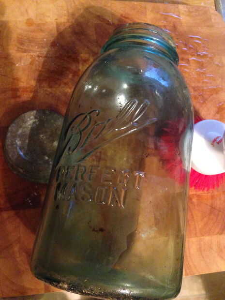 Anexo 2: tarro antes mencionado y la tapa después de un buen cepillado de matorral y algunos plato jabón. ¿Cuenta de la porquería que no sale? (Recuerde utilizar un cepillo de plástico y no un "cojín de brillo" como que raya el vidrio de la jarra y la tapa. También puede usar un jabón suave si usted está preocupado acerca de la condición de su tapadera.)