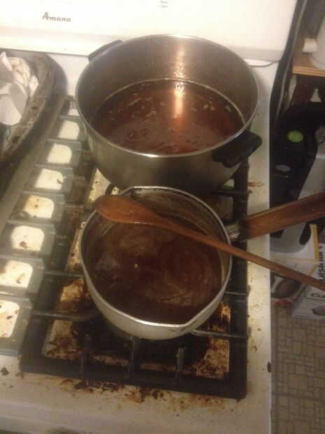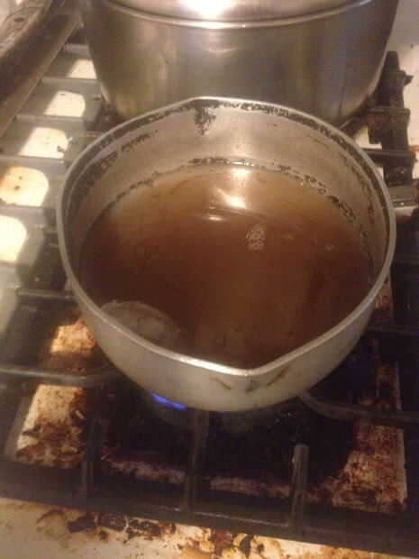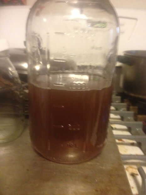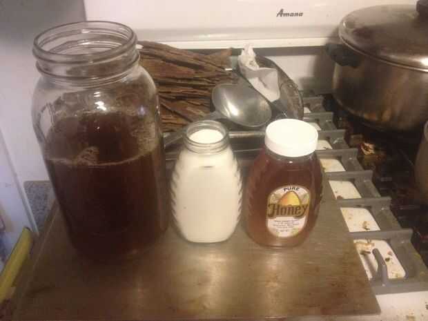 El segundo lote fue un poco más tradicional (tenía té extra y poco de miel). Un cuarto de galón de té, té de Shagbark dos cuartos de galón. Cocinar a fuego lento hasta logra el espesor deseado aproximadamente 10-15 minutos.